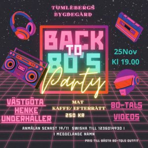 80-tals videos, Västgöta Henke underhåller, mat & kaffe med efterrätt.